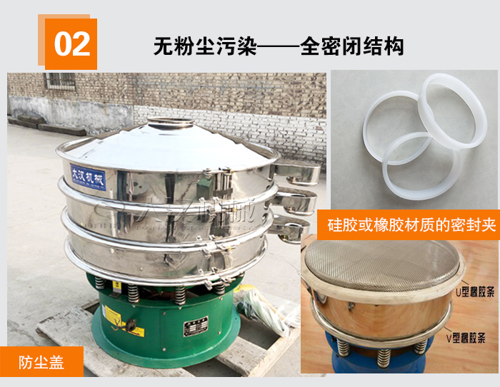 在篩分粉狀物料時,不少用戶抱怨說揚塵大,在購買時用戶需要考慮到這一點,所以增加了選購的難度。大漢旋振篩設備采用全密閉結構,外加防塵蓋避免在粉狀物料篩分過程中出現粉塵飛揚現象,我們廠家的旋振篩采用硅膠或橡膠材質的密封件對篩機進行密封處理,選用德國進口膠水進行加固,可以很大程度上降低粉塵污染。