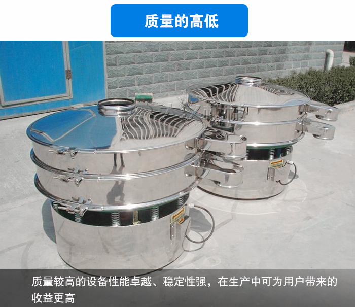 醫藥不銹鋼旋振篩的生產需要嚴格按照食品衛生要求,所以振動篩廠家在設計生產中需要注意設備材質、密封性能。所用材質需304不銹鋼或更高質量的板材,密封件需使用衛生級硅膠材質。