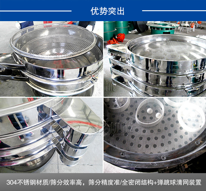 3、全密閉結構+彈跳球清網裝置,網孔不堵塞、粉末不飛揚。