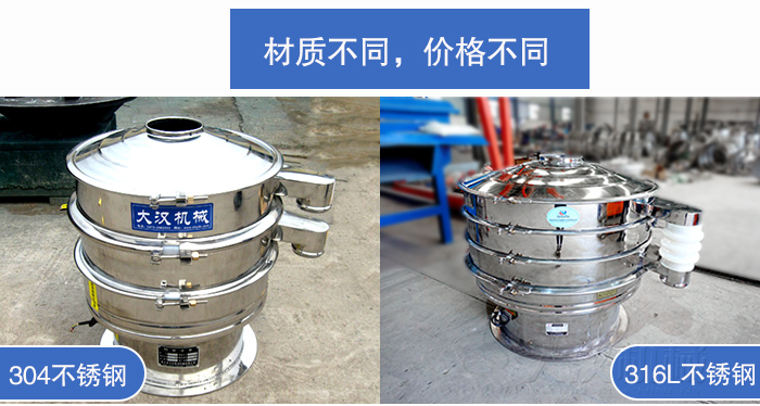淀粉旋振篩材質主要采用不銹鋼材質,但不銹鋼材質的旋振篩又分為304不銹鋼和316L不銹鋼,不同材質之間會存在原材料采購費用的不同,價格自然也會有所不同。用戶需要結合篩分物料的特性及使用場合進行選擇。