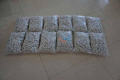 尼龍擋球環(huán)和橡膠彈跳球安裝在振動(dòng)篩的沖孔板與網(wǎng)架之間,其目的是為了固定彈跳球的位置,防止彈跳球聚集到某個(gè)角落,造成大部分的篩網(wǎng)面得不到充分的彈擊,從而影響透網(wǎng)效果和篩分效率。