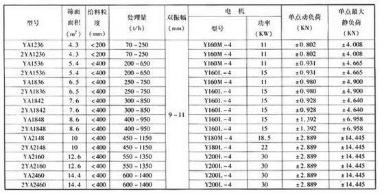 2 Y A □ □YA系列圓振動篩的主要技術(shù)參數(shù):