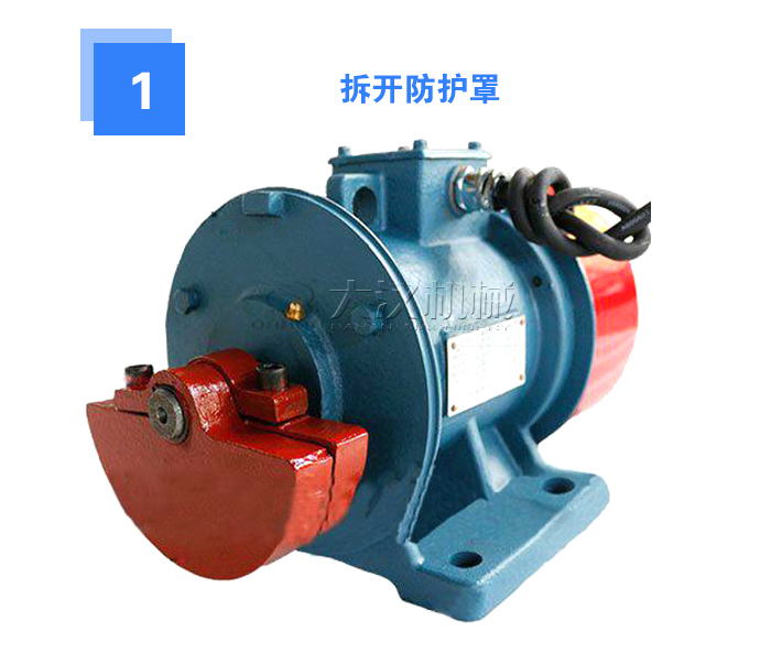 要放松振動電機(jī)防護(hù)罩的緊固螺釘,拆下振動電機(jī)兩端的防護(hù)罩。