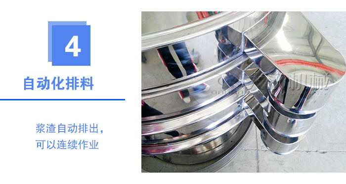 加緣式旋振篩能把各類漿液中的非溶性固體物質迅速清除,漿渣自動排出,可以連續作業,產量高可以達到5t/h。