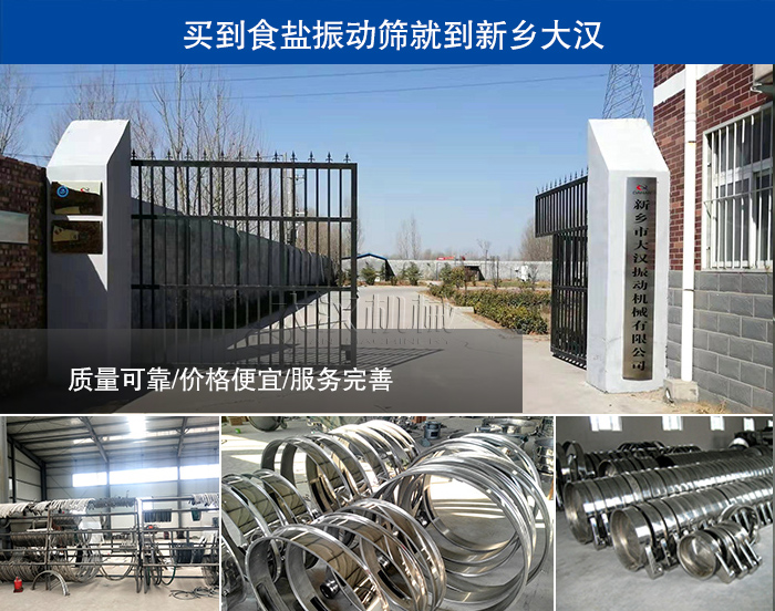 質量可靠:大漢公司集設備的研發、生產、銷售、服務等于一體,現擁有100000平方米現代化工業廠房,各種金加工、鉚焊等設備上百余臺,大漢食鹽振動篩已經通過ISO國際質量體系認證和歐盟CE認證。
