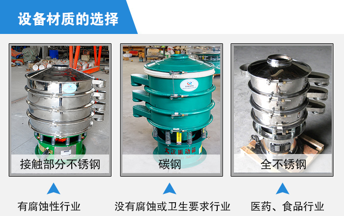 根據物料性質與生產環境不同,三次元旋振篩所用材質也不相同,三次元旋振篩常用材質為Q235碳鋼和304不銹鋼材質,對于沒有腐蝕或衛生要求的選擇碳鋼即可,而針對醫藥、食品行業需要選擇304不銹鋼材質的設備,而如果腐蝕性強就需要選擇316L不銹鋼材質。