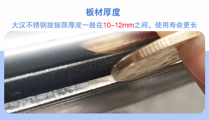 不銹鋼旋振篩說的是整機或與物料接觸部位為304不銹鋼材質(zhì),有的廠家為了降低生產(chǎn)成本,將其板材厚度降低至4mm以下,雖然其價格會比較便宜,但是在后續(xù)使用過程中就會出現(xiàn)篩框斷裂、壽命降低等問題,所以選擇不銹鋼旋振篩時請先查看板材厚度是否合格,大漢不銹鋼旋振篩厚度一般在10-12mm之間,使用壽命更長。